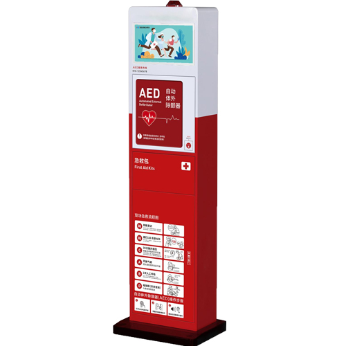 AED箱體:配置三角牌可自行選擇拆裝。大容量?jī)?chǔ)物柜可容納消防器材或急救包等。